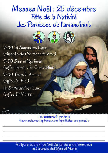 Déposez-la au chalet de Noël des Paroisses de l'amandinois (sur le marché de Noël) ou à la crèche de l'église St Martin.