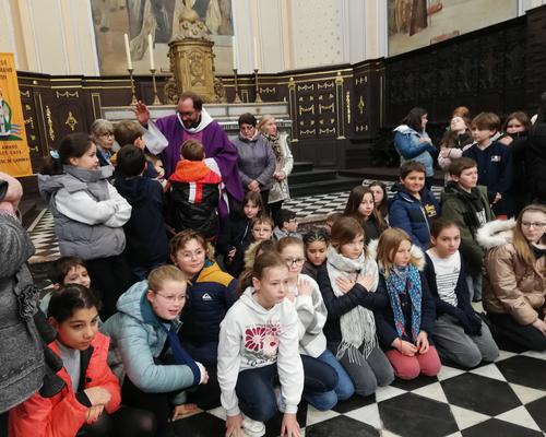Dimanche 17 mars, dès 9h15, c'est reparti pour les ateliers : tout d'abord autour de l’Évangile du dimanche, puis découverte de l'église St Martin avec les catéchistes, et enfin dans la sacristie avec l'Abbé Jean qui leur a présenté les objets liturgiques et expliqué les gestes de la communion.