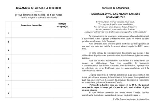 N'hésitez pas dès à présent à demander des intentions de messes pour la Toussaint.
