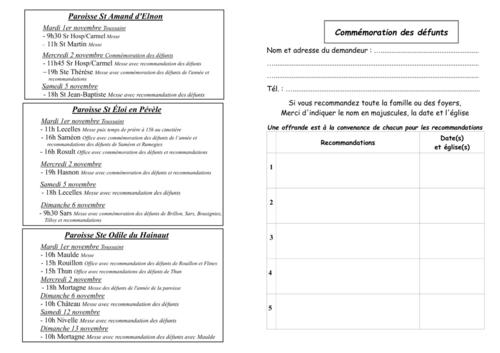 Vous pouvez également recommander les défunts de vos familles aux messes du 2 novembre ou aux offices dans le mois à l'aide des formulaires ci-dessous